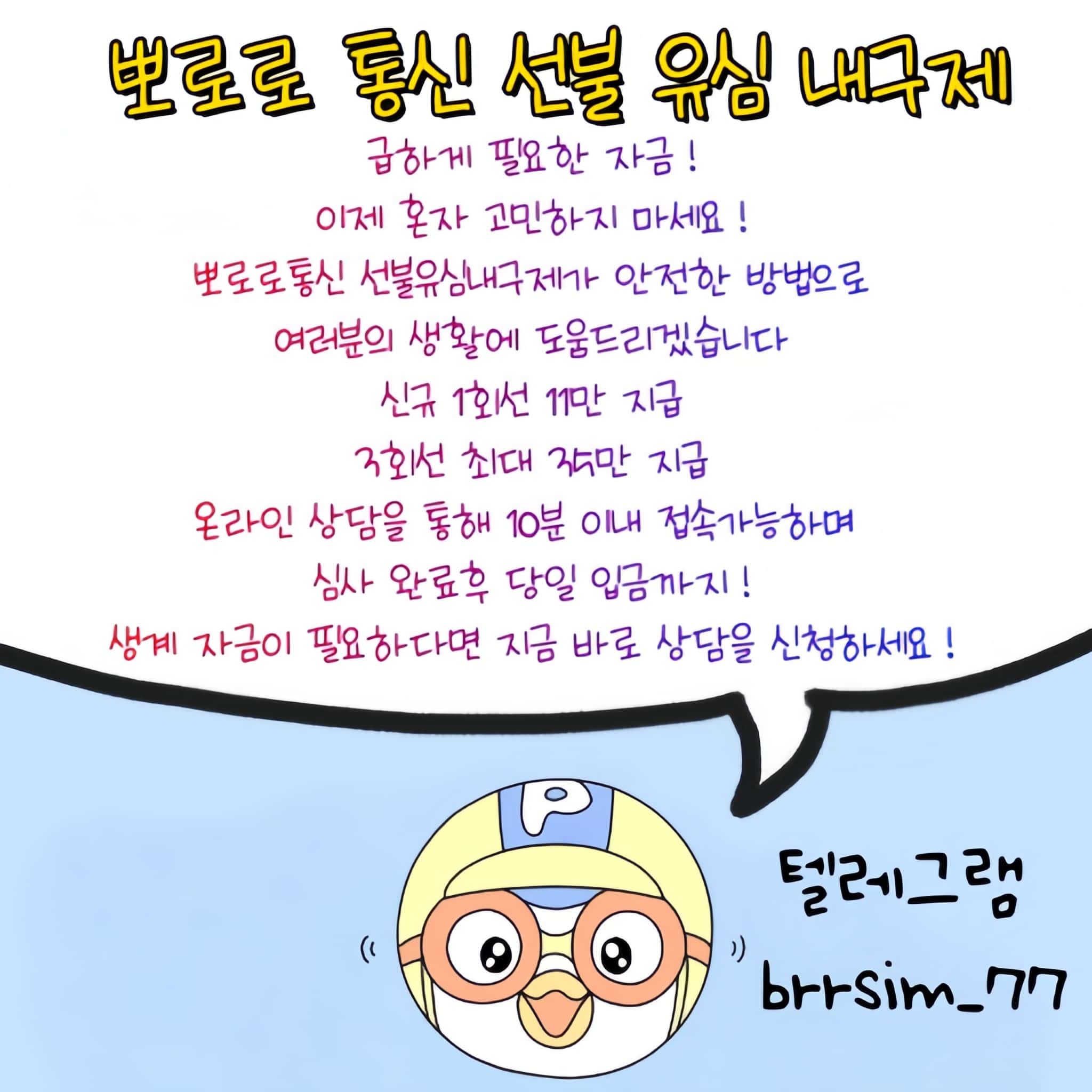 ㅌ레그램 : @brrsim_77 내구제당일정산 뽀로로 통신 비상금대출 잘 나오는 곳 군인소액당일대출 근로복지공단긴급생계비대출 https://brrsim77.isweb.co.kr